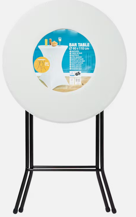 Kan ook geleverd worden met statafel hoes (Tafelrok) voor EUR 2 / tafel / dag extra.